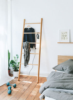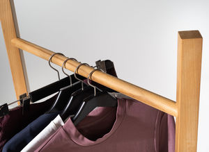 Se si desidera utilizzare il piolo superiore di italic come appendiabiti, è possibile togliere il secondo e il terzo piolo per fare spazio alle grucce con i vestiti. I montanti sono elegantemente inclinati: in questo modo, l’attacco dei pioli è facilmente sganciabile e non visibile a prima vista.