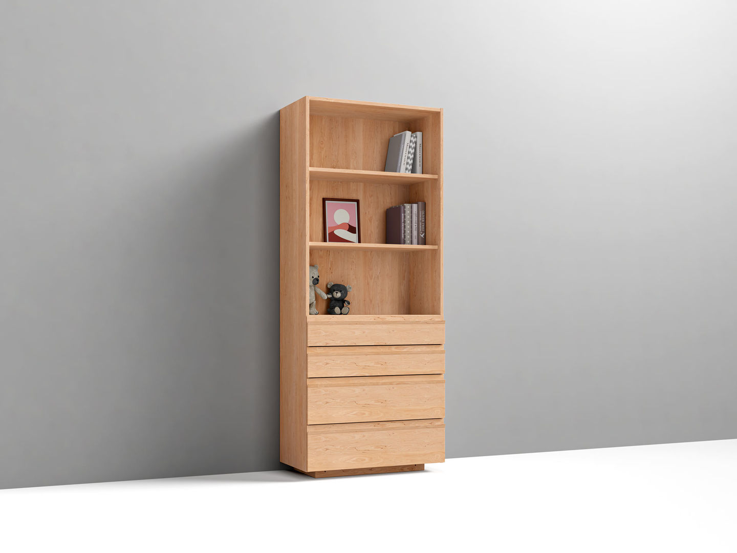 Wie ein Kind wird auch der Bedarf an Stauraum mit der Zeit größer. Die Kinderzimmer Kleiderschränke und Regale aus unserem kids Programm bieten hier genau die richtigen Möglichkeiten, um das Angebot entsprechend der Nachfrage jederzeit zu erweitern. Das durchdachte Design unserer Kinderzimmerschränke hilft den Kindern, selbständig ein organisiertes Ordnungssystem zu entwickeln. Basierend auf einem gemeinsamen Korpussystem lassen sich Kinderkleiderschrank und Regale perfekt miteinander kombinieren. Das macht die Planung zum Kinderspiel. Drehtüren und Laden im unteren Bereich der Regale ermöglichen einen einfachen Zugang für Kinder. So können Spielsachen komfortabel von Kinderhand verstaut werden. Eine mobile Rolllade kann überall im Raum genutzt werden und verschwindet danach wieder ordentlich im Kinderkleiderschrank. Liebevolle Holzgriffe erleichtern auch kleinen Kinderhänden das Öffnen und Schließen.